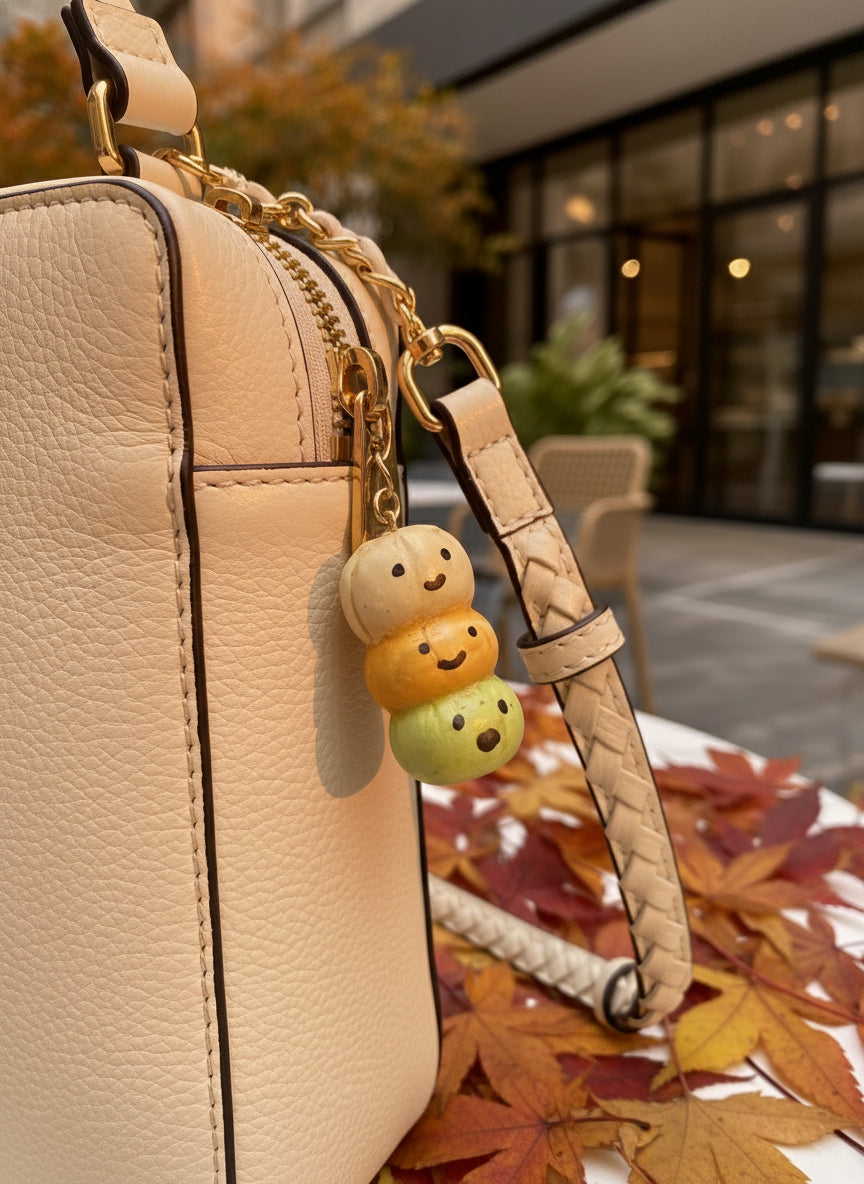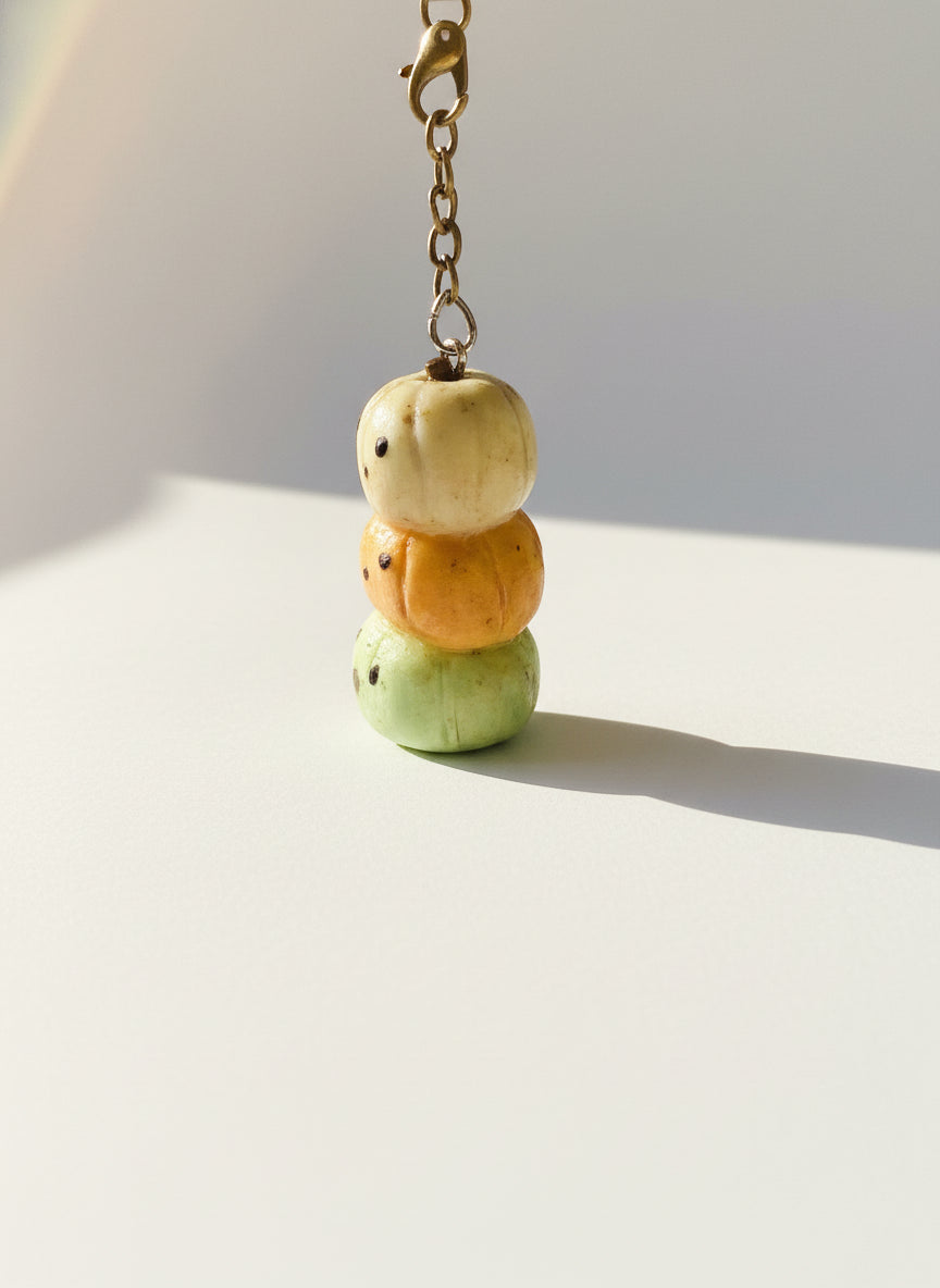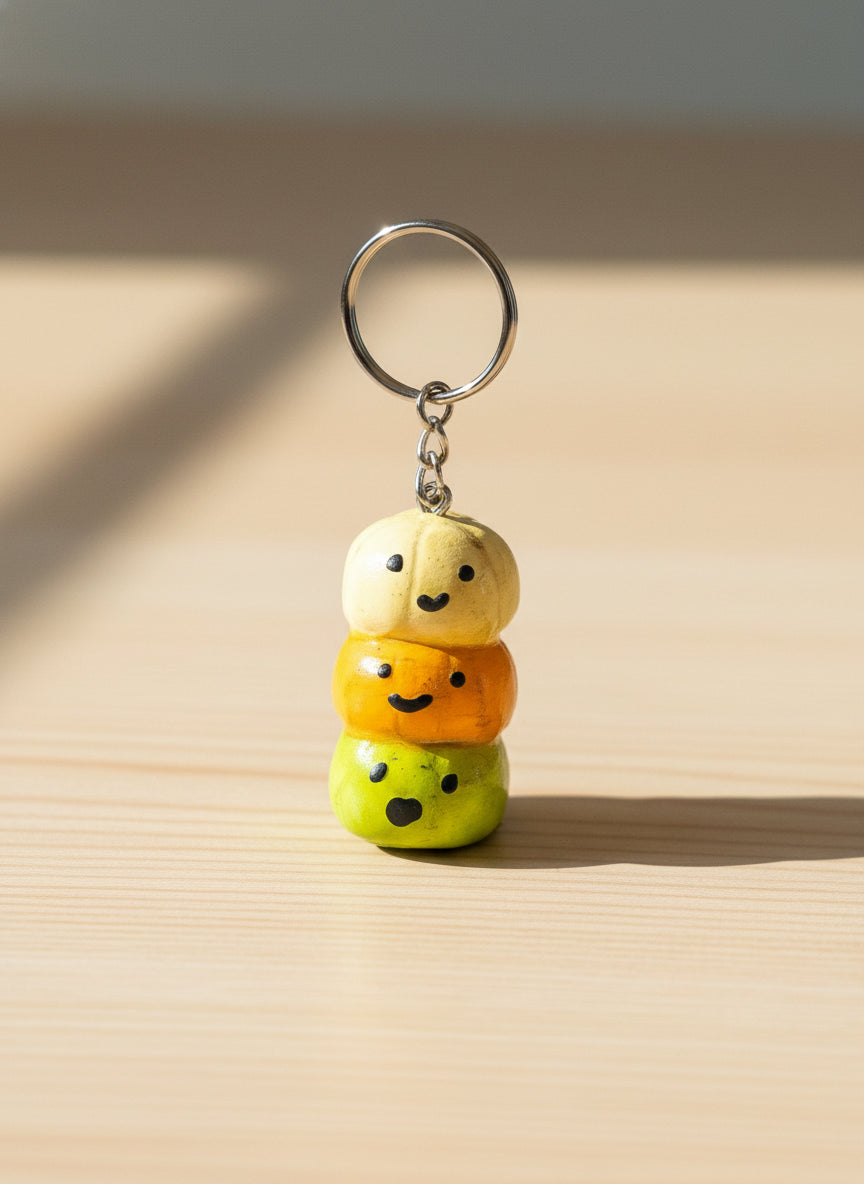 This handmade charm features three happy little faces stacked in cozy fall colors — sage green, white, and orange! Each piece is sculpted and painted with care to bring a warm, playful touch to your keys, bag, or backpack. It’s the perfect way to carry a little fall joy everywhere you go.